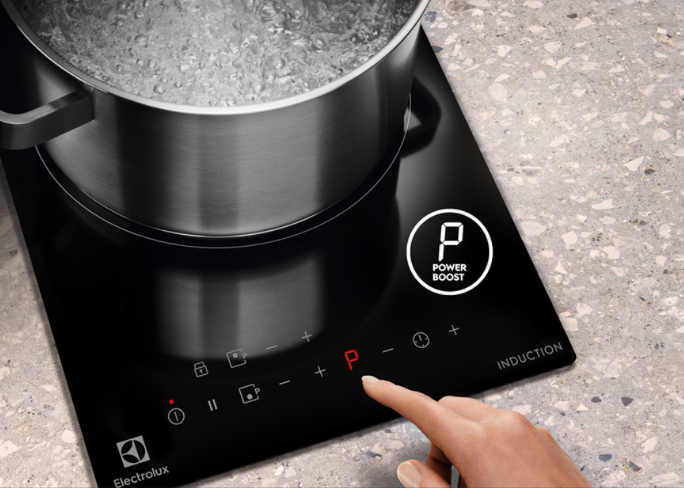 The "P" symbol on your hob refers to the PowerBoost feature. Much faster than gas, this feature gives you full control over your induction hob, providing a quick burst of heat, and letting you boil water almost instantly. It's perfect for tasks like boiling potatoes and other quick-cooking jobs too, like searing meat. Because of its speed and power, it’s important to be careful when using oil and not leave the pan unattended.
