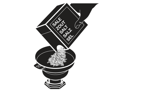 2. If you’re adding salt for the first time: Pour 1 litre of water into the salt container.