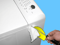 Insert a screwdriver into the side slots as indicated in the figure, first on one side and then on the other, always taking care to insert a protection between the cabinet and the screwdriver to avoid scratching the paint.