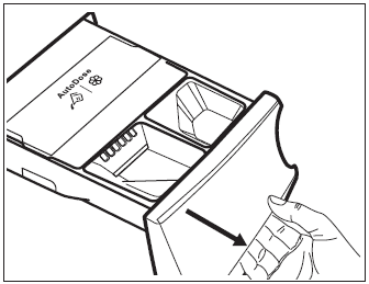 2. Open the detergent dispenser and lift up the AutoDose cover lid.