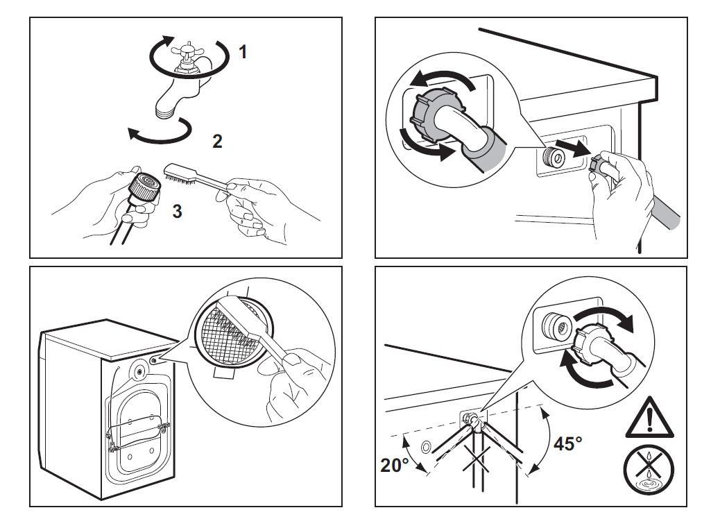 2. Clean the filter in the inlet hose next to the tap.